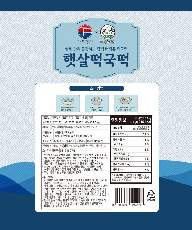 PB- 마트명가/송학 햇살 떡국떡 2.5kg