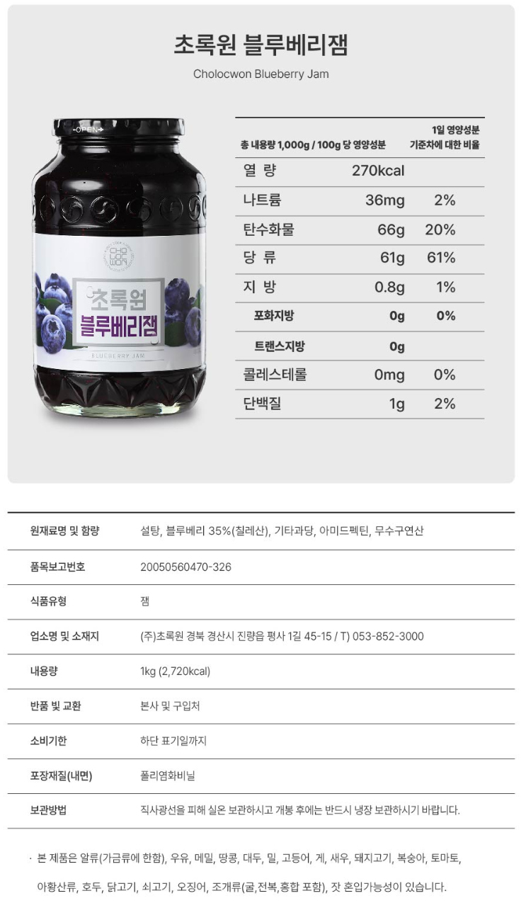 초록원 블루베리쨈 1kg