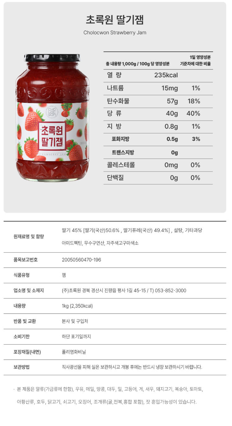 초록원 딸기쨈 1kg
