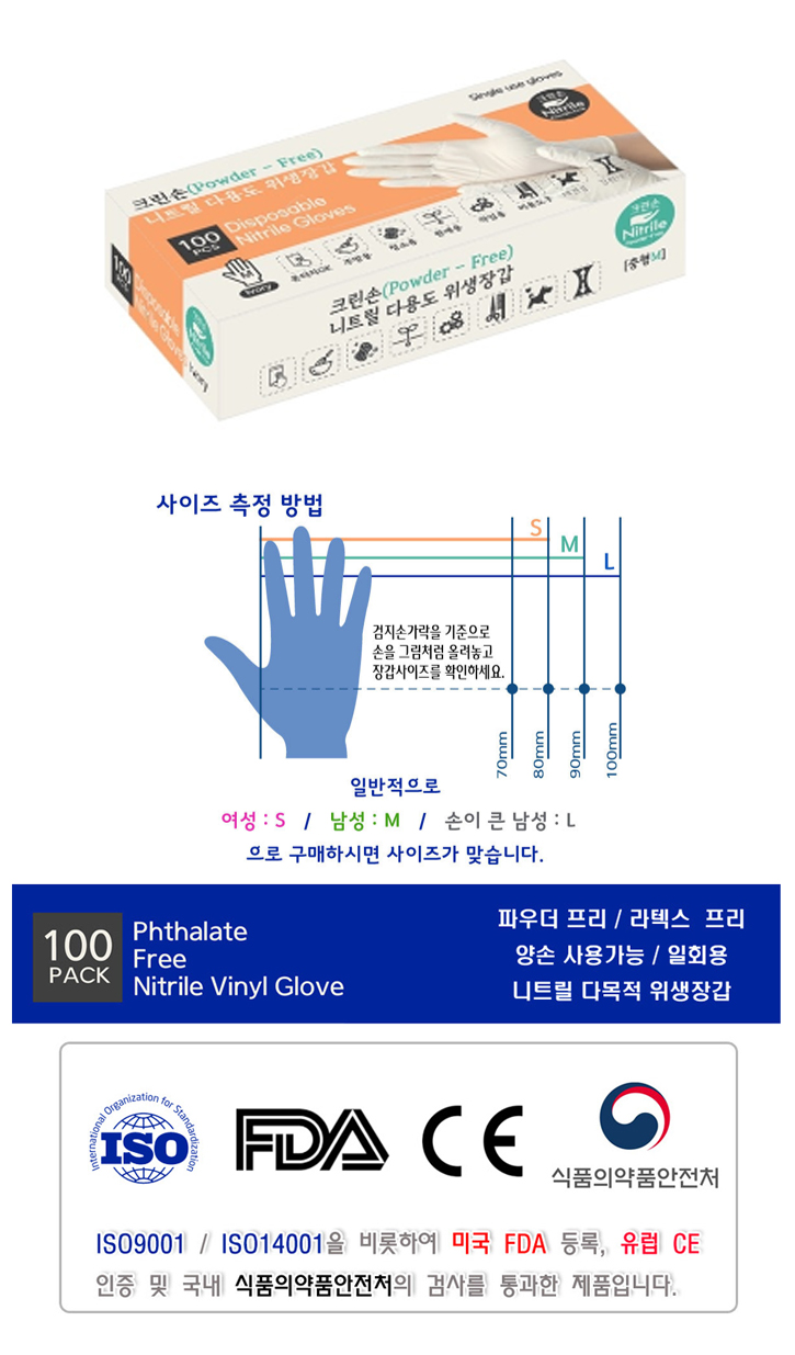 크린손니트릴다용도위생장갑(아이보리)-M