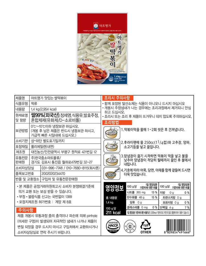 PB- 마트명가 맛있는 쌀떡볶이 1.4kg