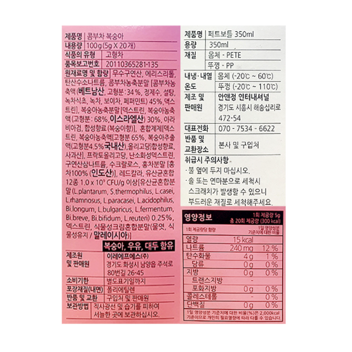 콤부차 복숭아 20T