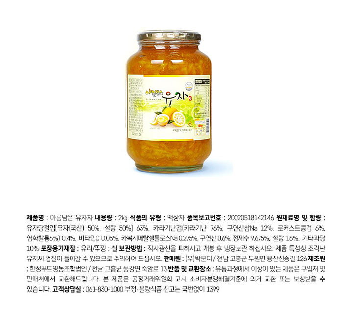 아름담은 유자차 2kg