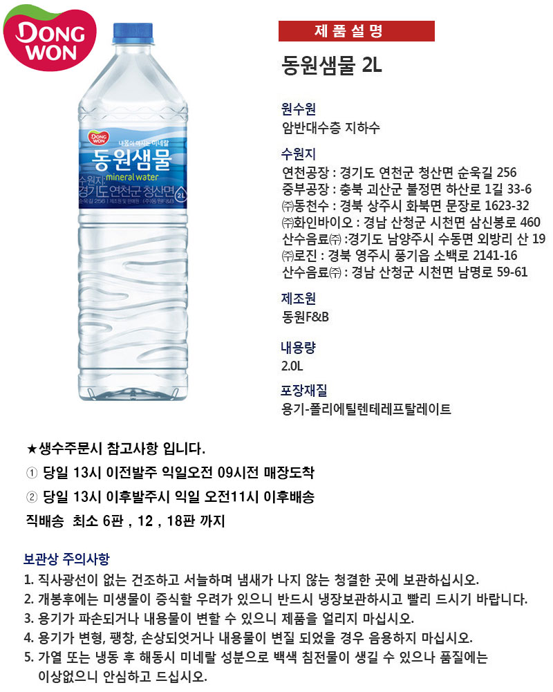 동원샘물 2L