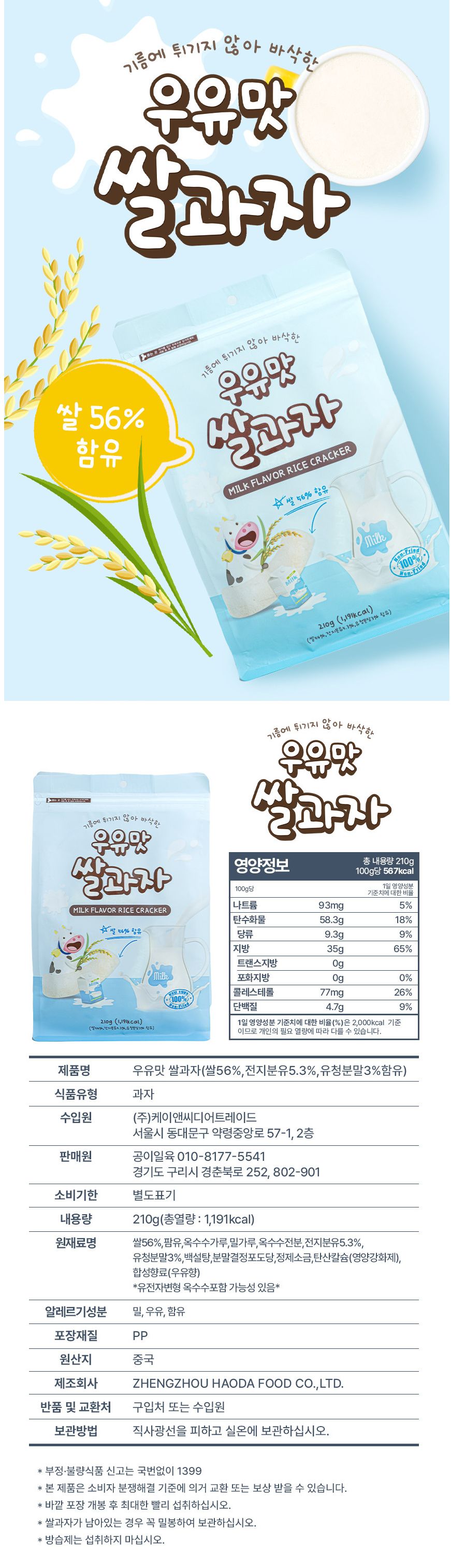 우유맛 쌀과자 210g