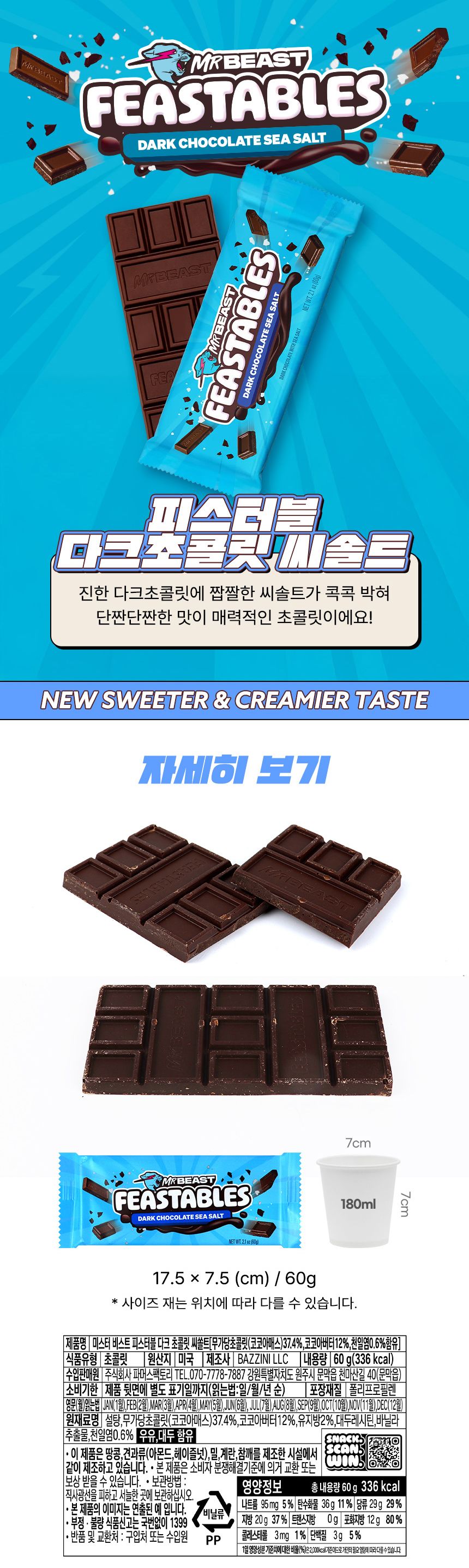 미스터비스트 피스터블 다크 씨솔트초콜릿 60g