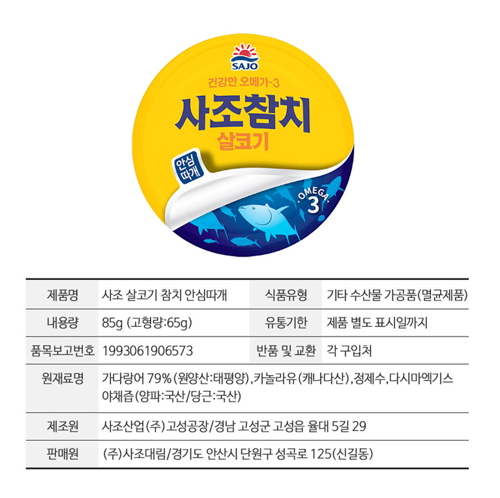 사조 살코기참치(안심따개) 85g