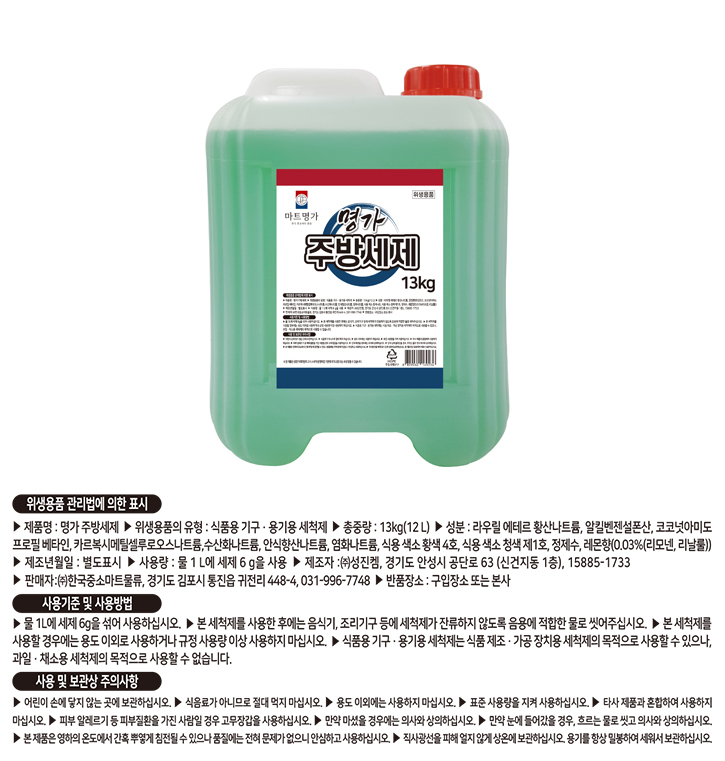 PB- 마트명가 주방세제 13kg