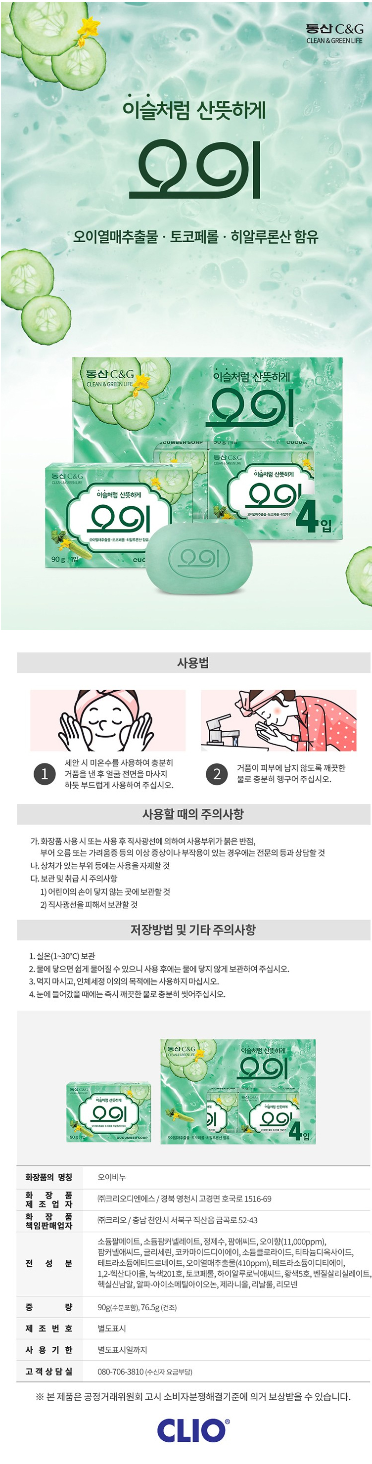 크리오 오이비누 90g*4p