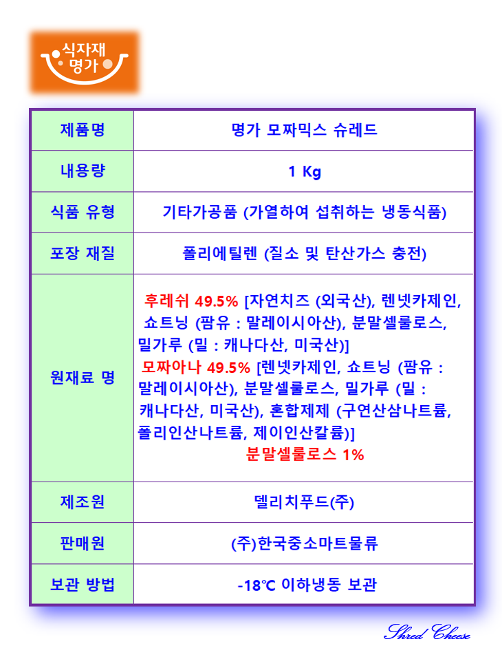 #냉PB-식자재명가 모짜믹스치즈슈레드1kg