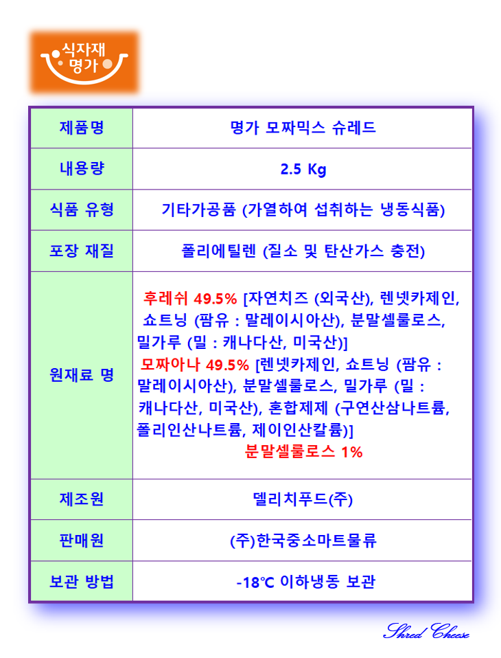 #냉PB-식자재명가 모짜믹스치즈슈레드2.5kg