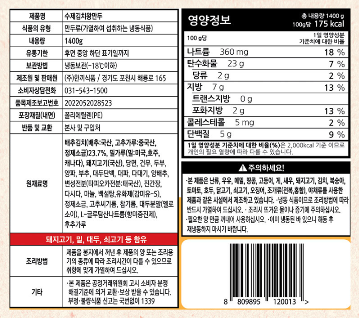#냉-수제김치왕만두1.4kg