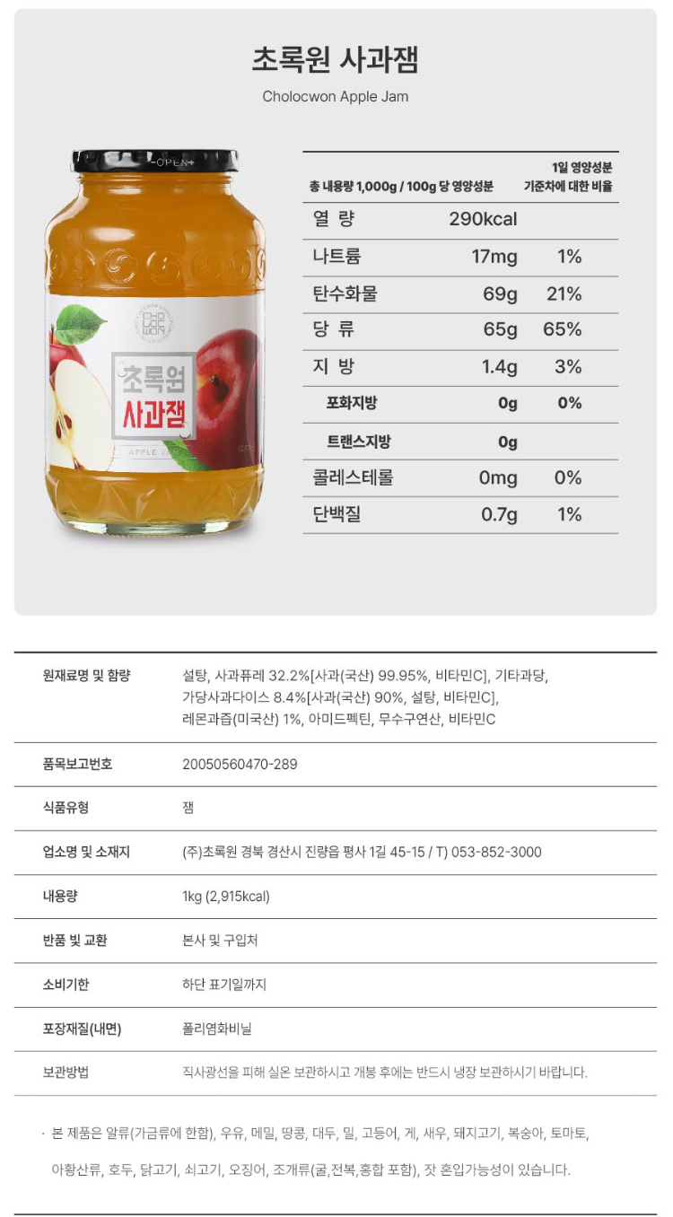 초록원 사과쨈 1kg