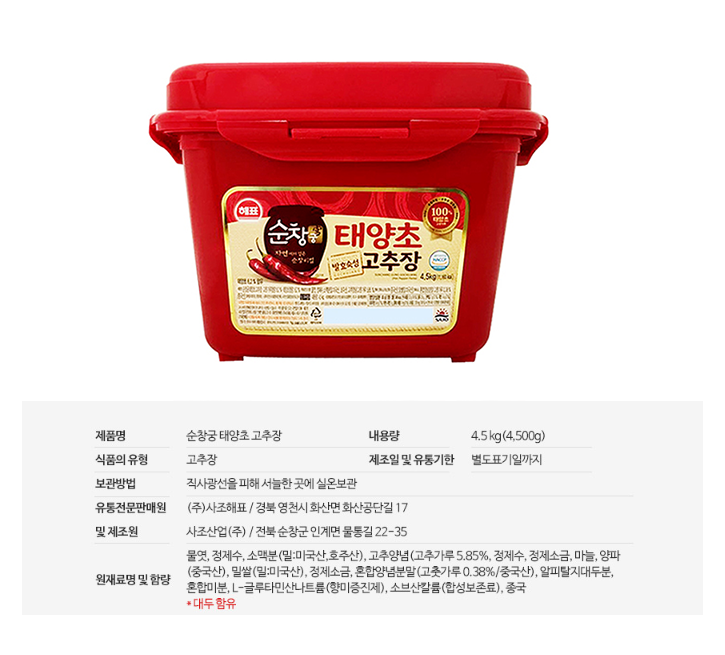 사조 순창궁 태양초 고추장 4.5kg